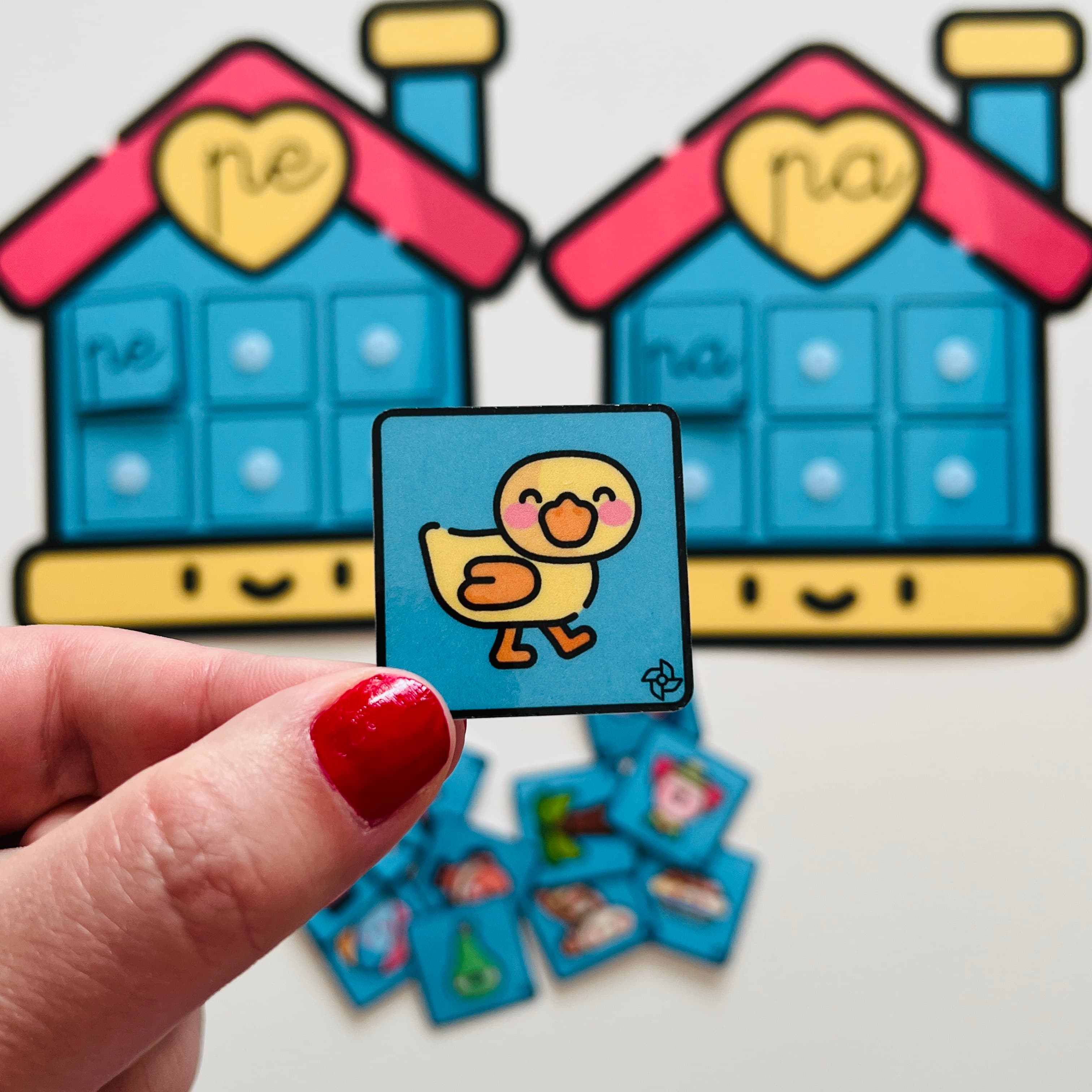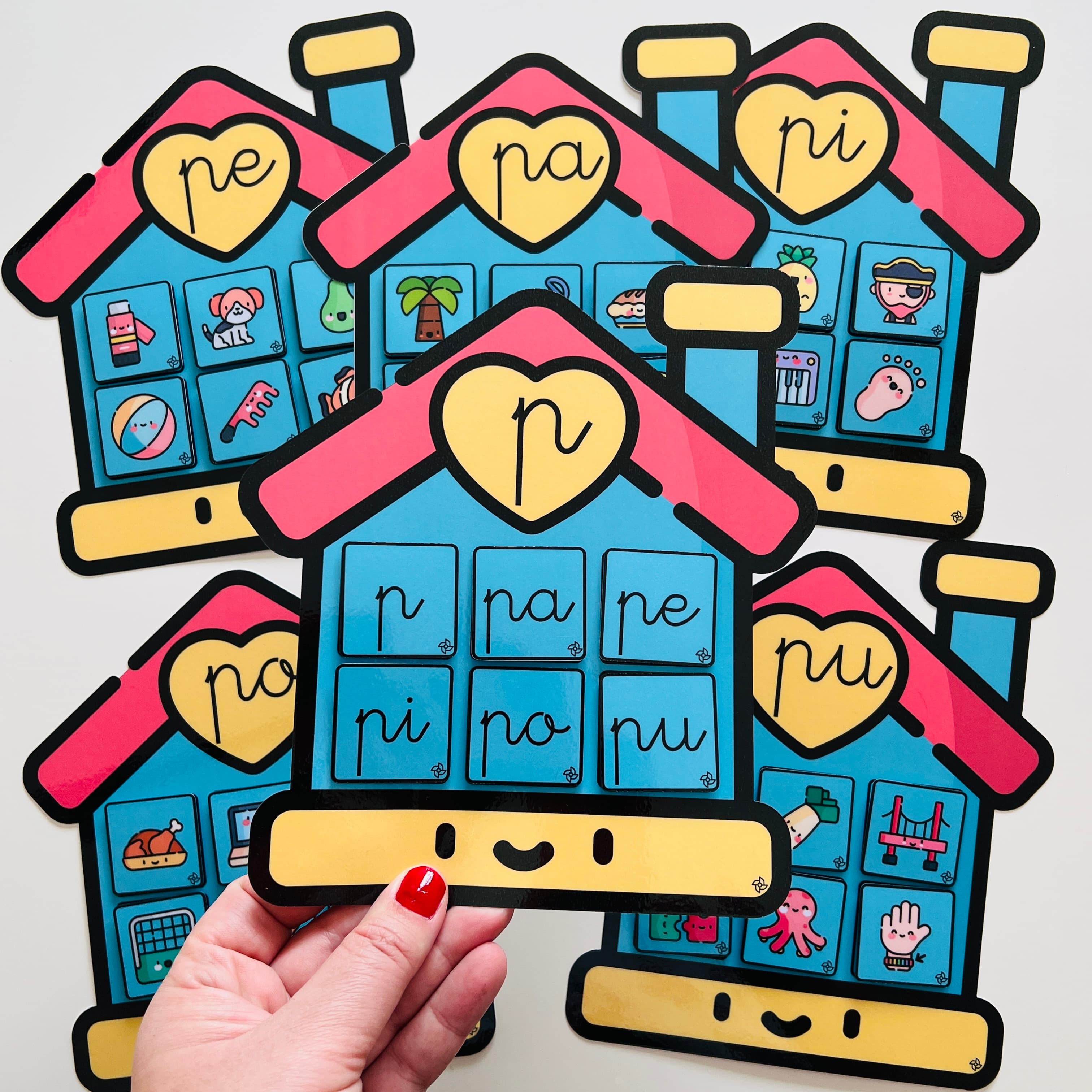- 5 casitas con las sílabas pa, pe, pi, po, pu.