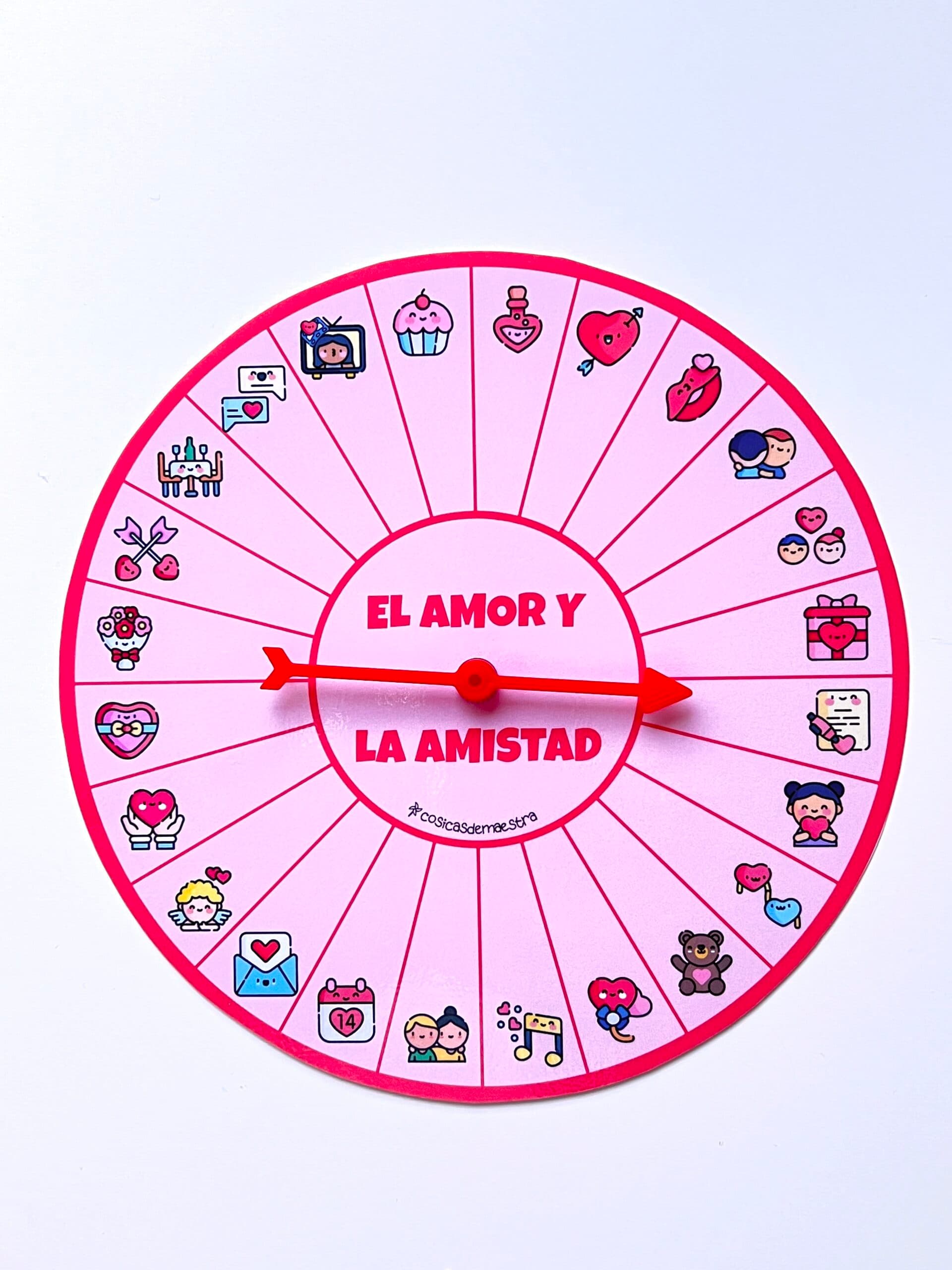 Mini ruleta para ofrecer diferentes oportunidades de aprendizaje a nuestros hijos y alumnado relacionado con la temática de San Valentín.