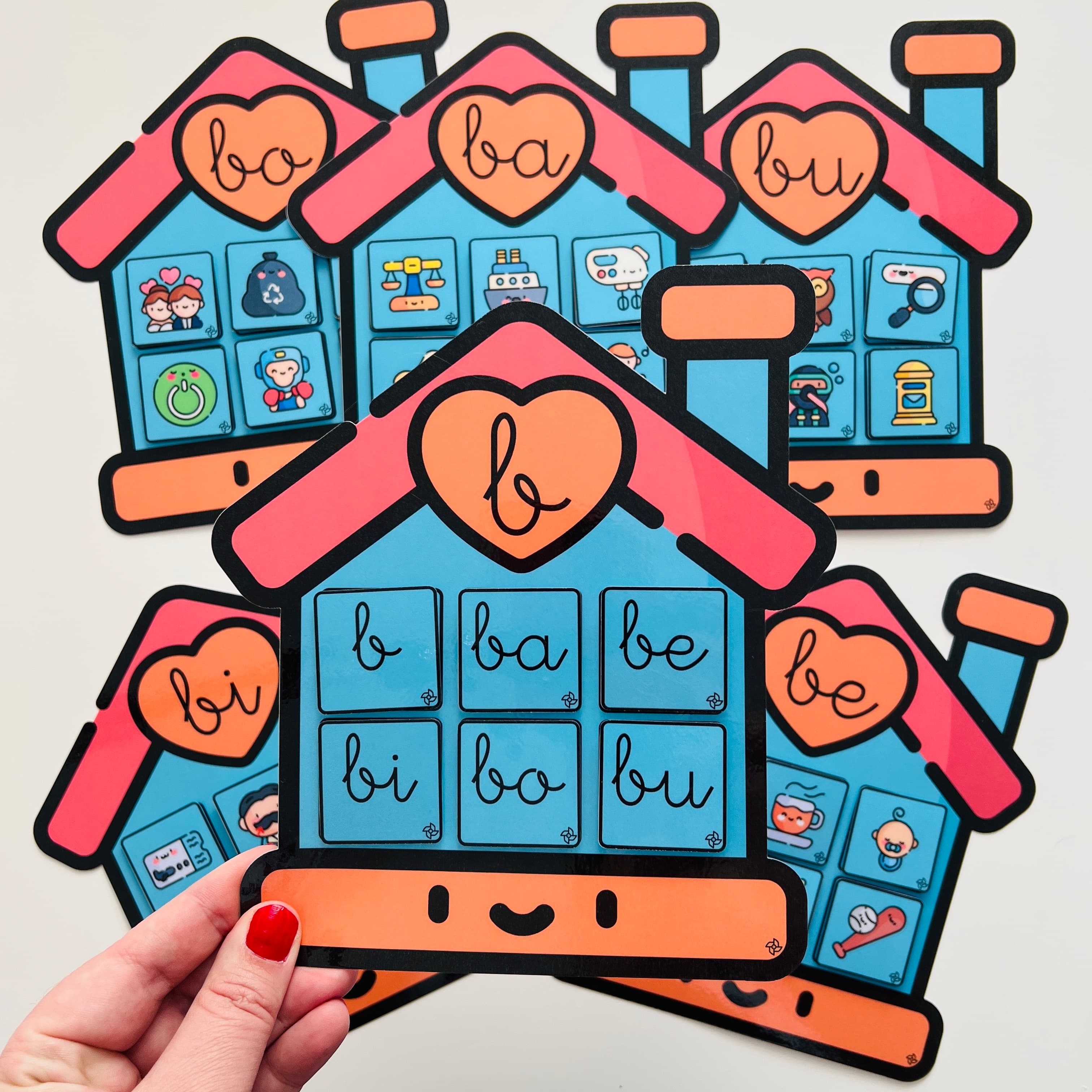 • 5 casitas con las sílabas ba, be, bi, bo, bu.