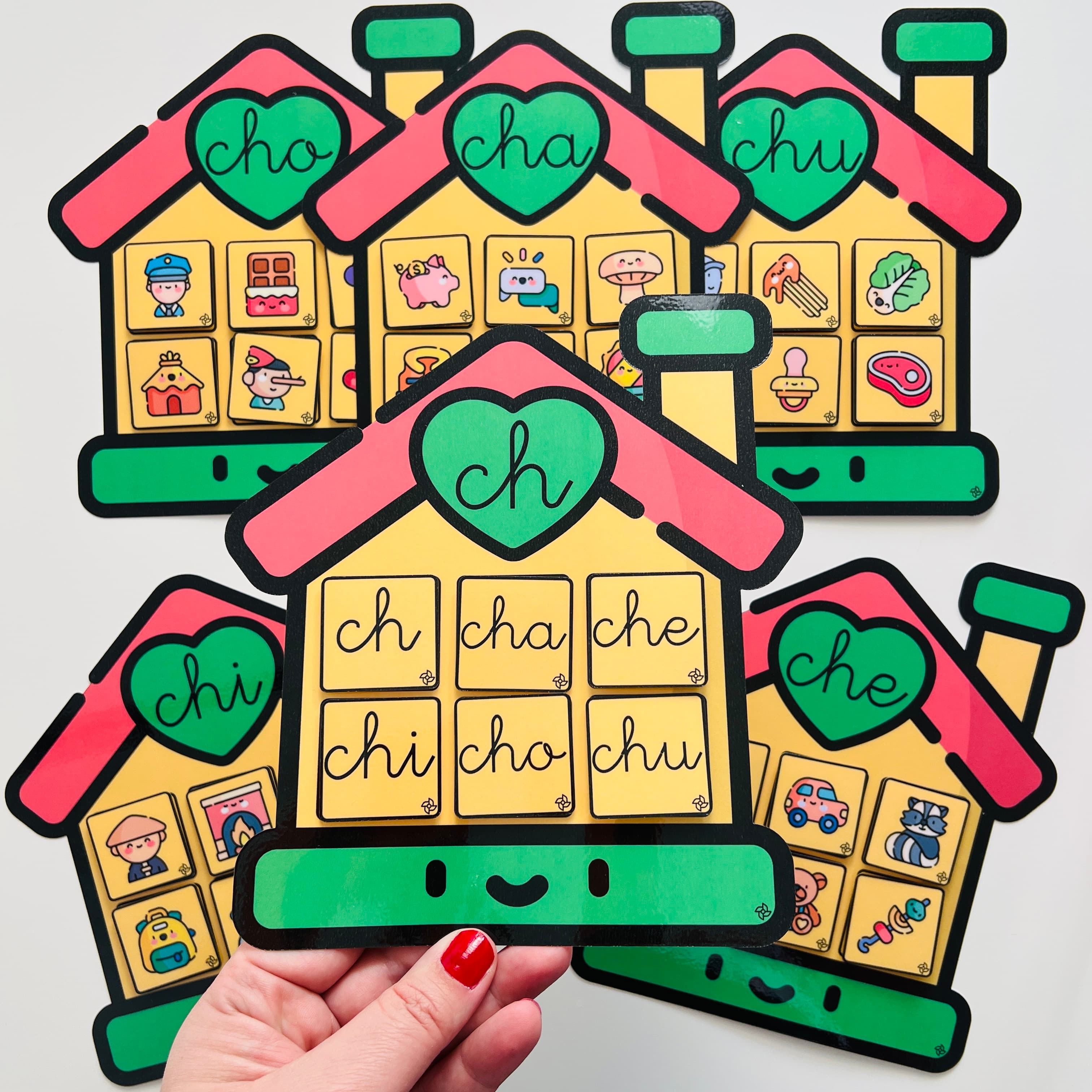 - 5 casitas con las sílabas cha, che, chi, cho, chu.