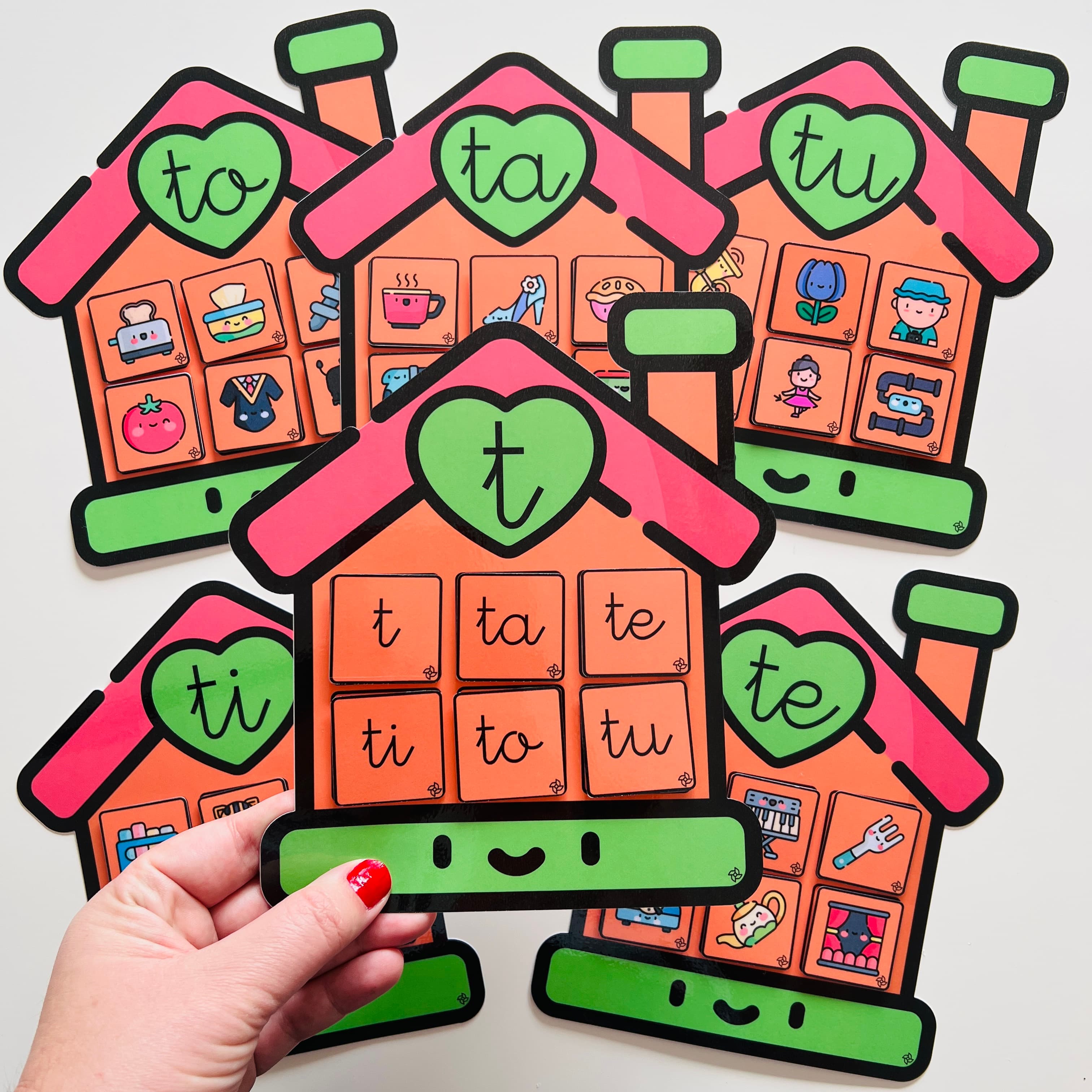 • 5 casitas con las sílabas ta, te, ti, to, tu.