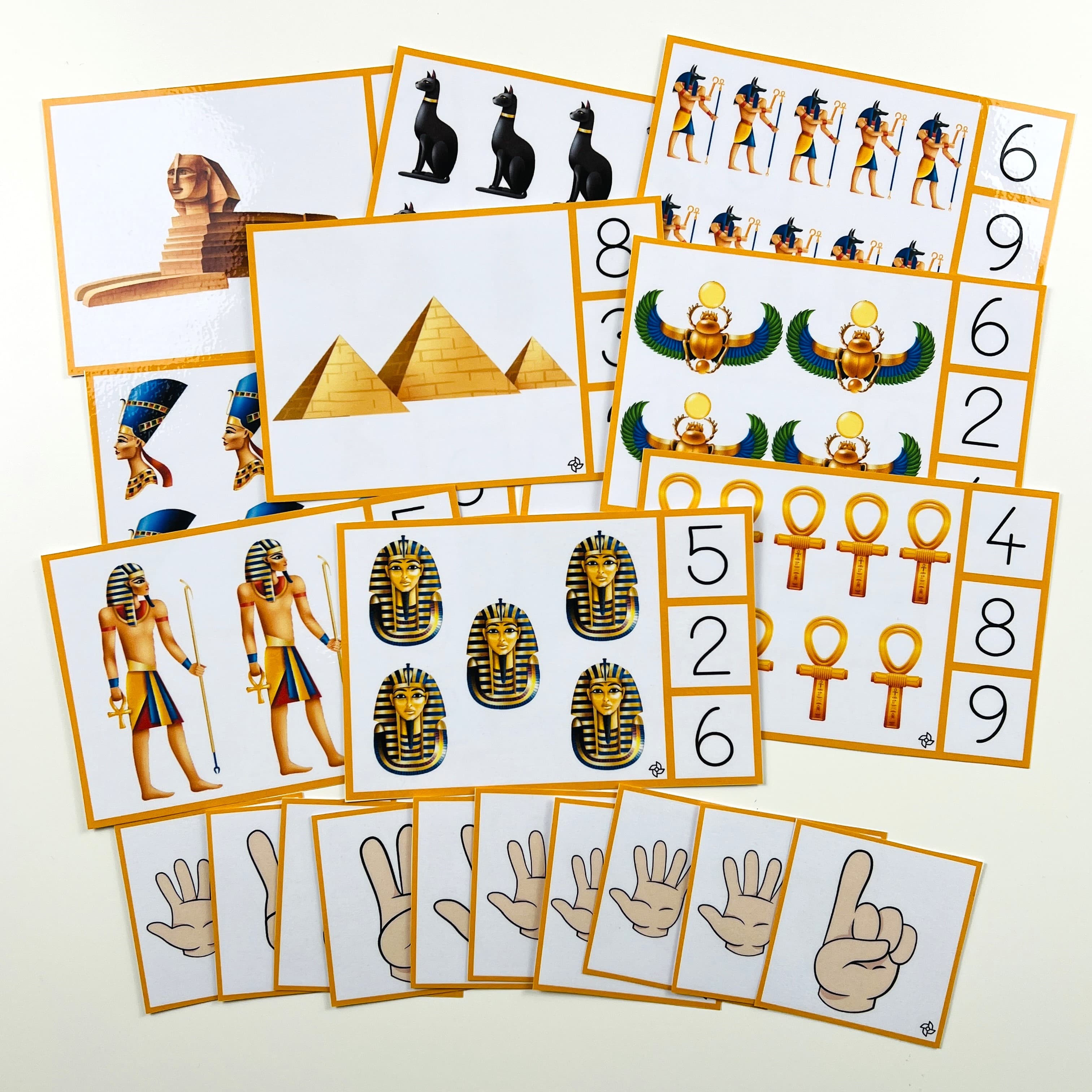 Juego para trabajar el conteo del 0 al 10 con elementos relacionados con Egipto.