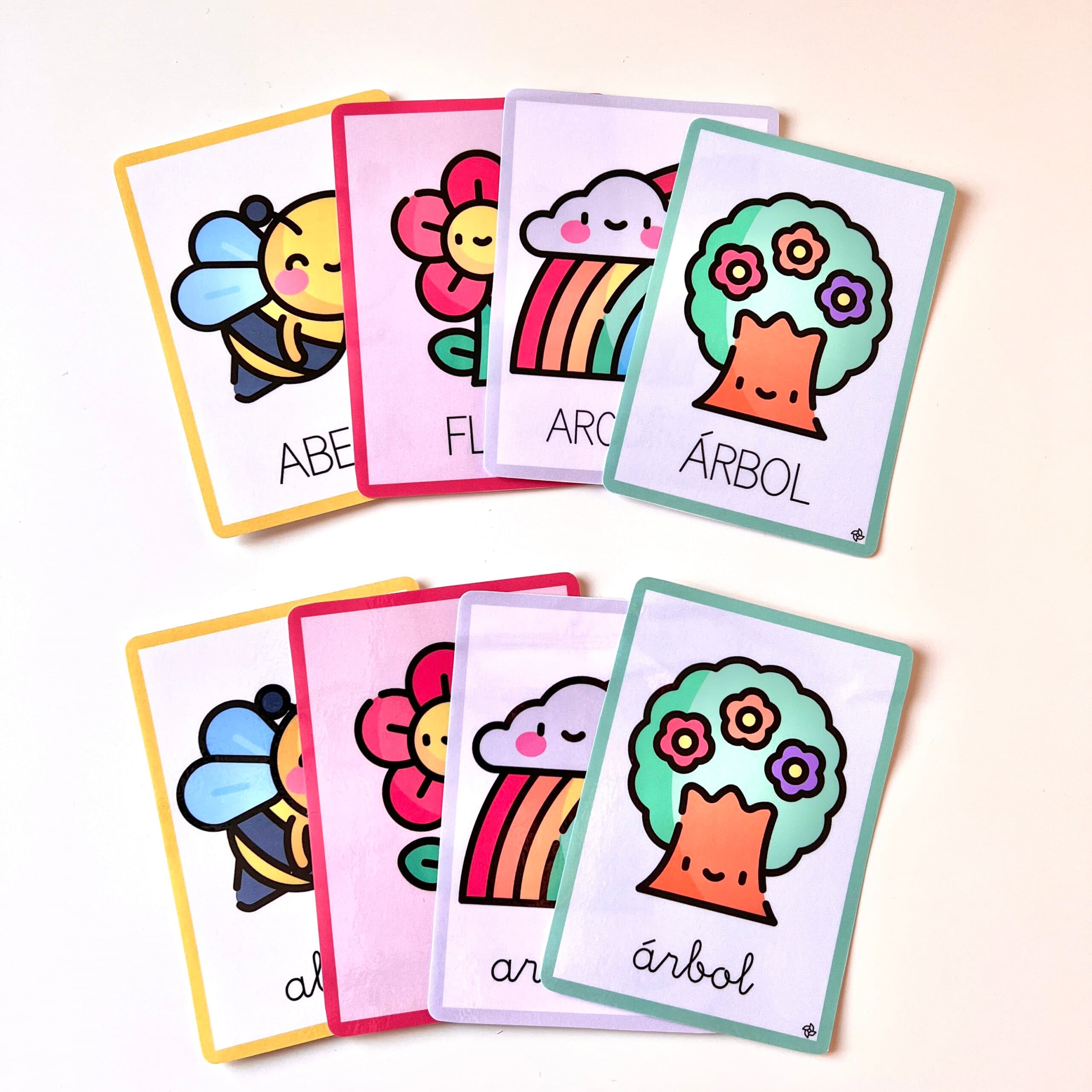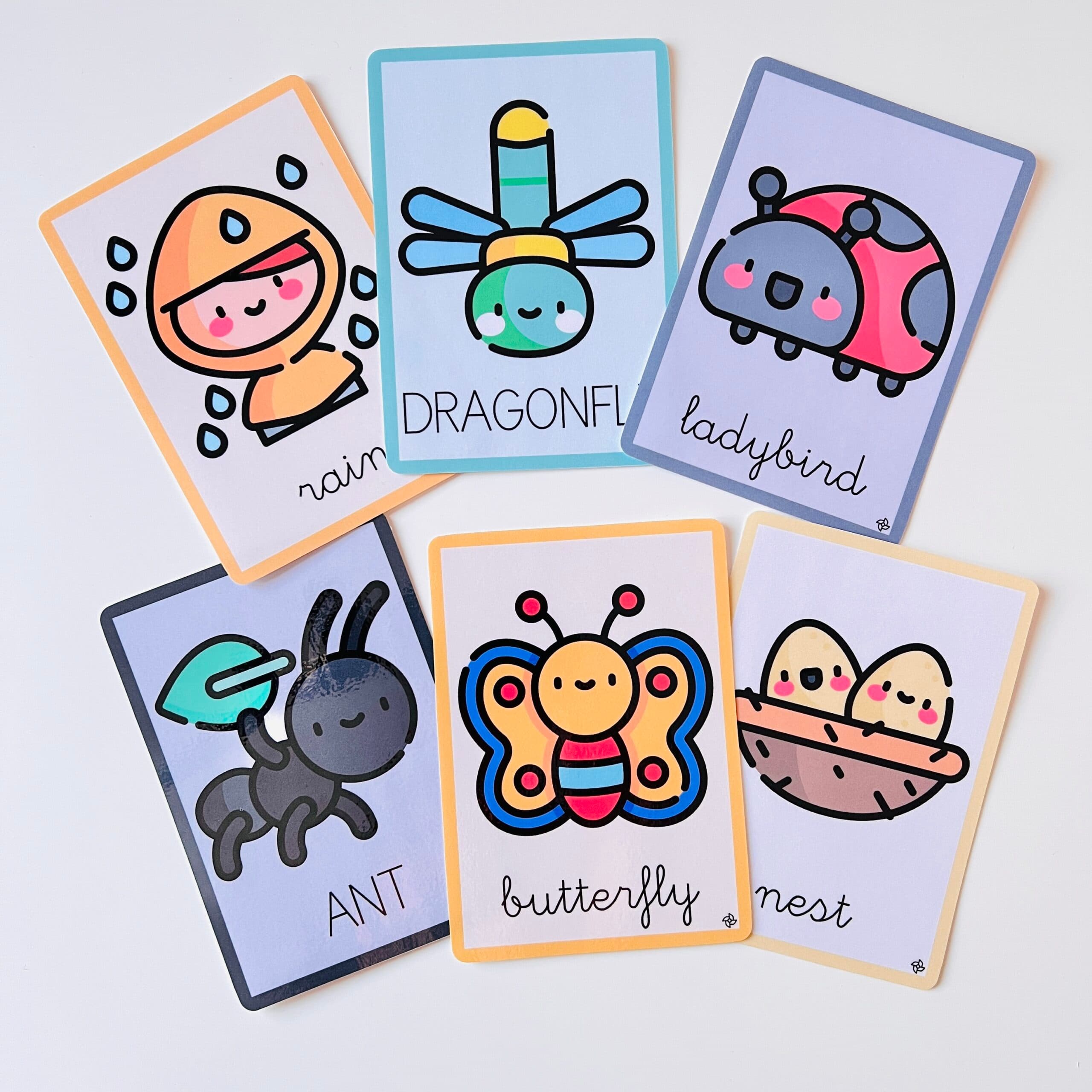 Juego con tarjetas de aprendizaje para trabajar vocabulario relacionado con la temática de la primavera.