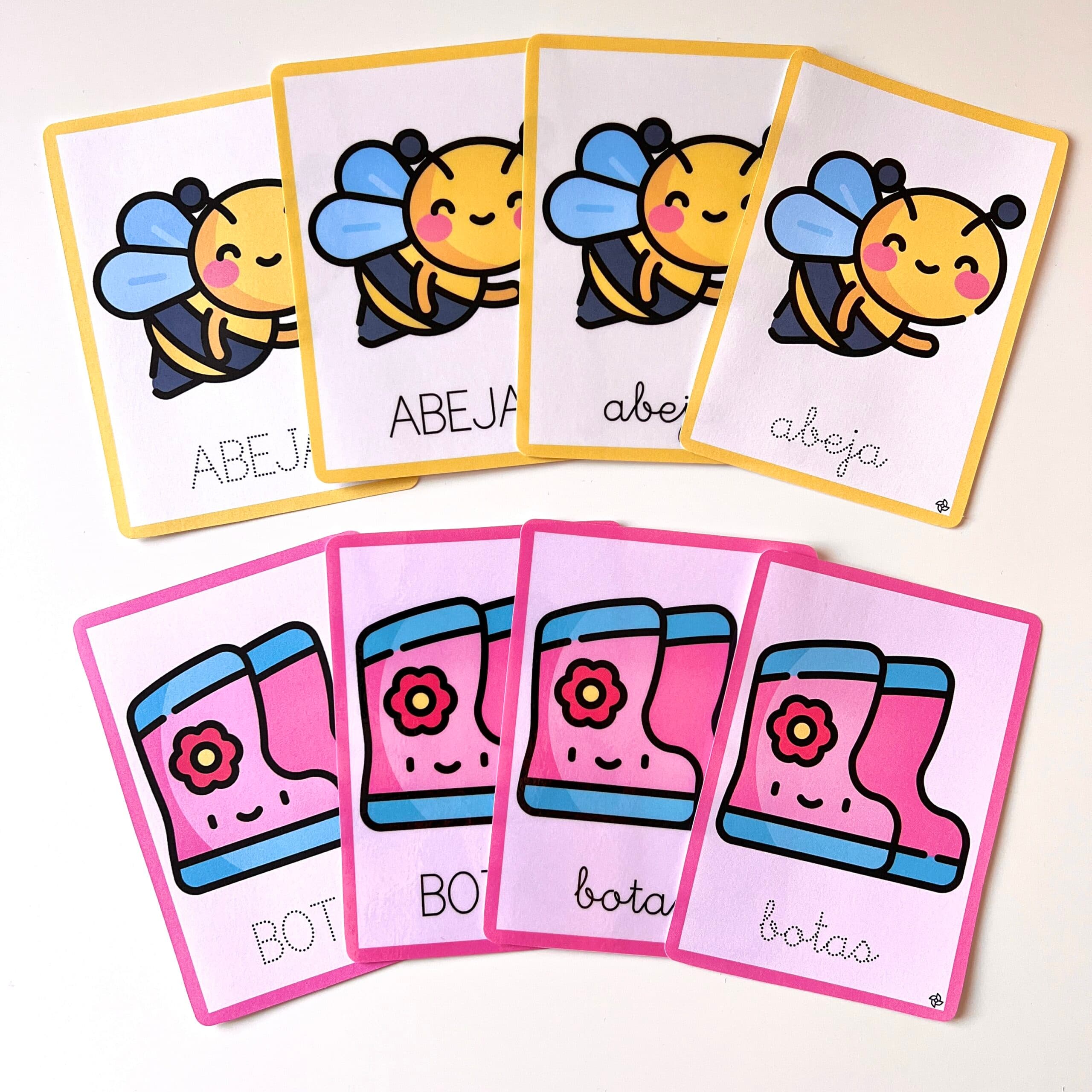 • 24 tarjetas con imagen y nombre en mayúscula o minúscula ligada o punteada, según tu elección.