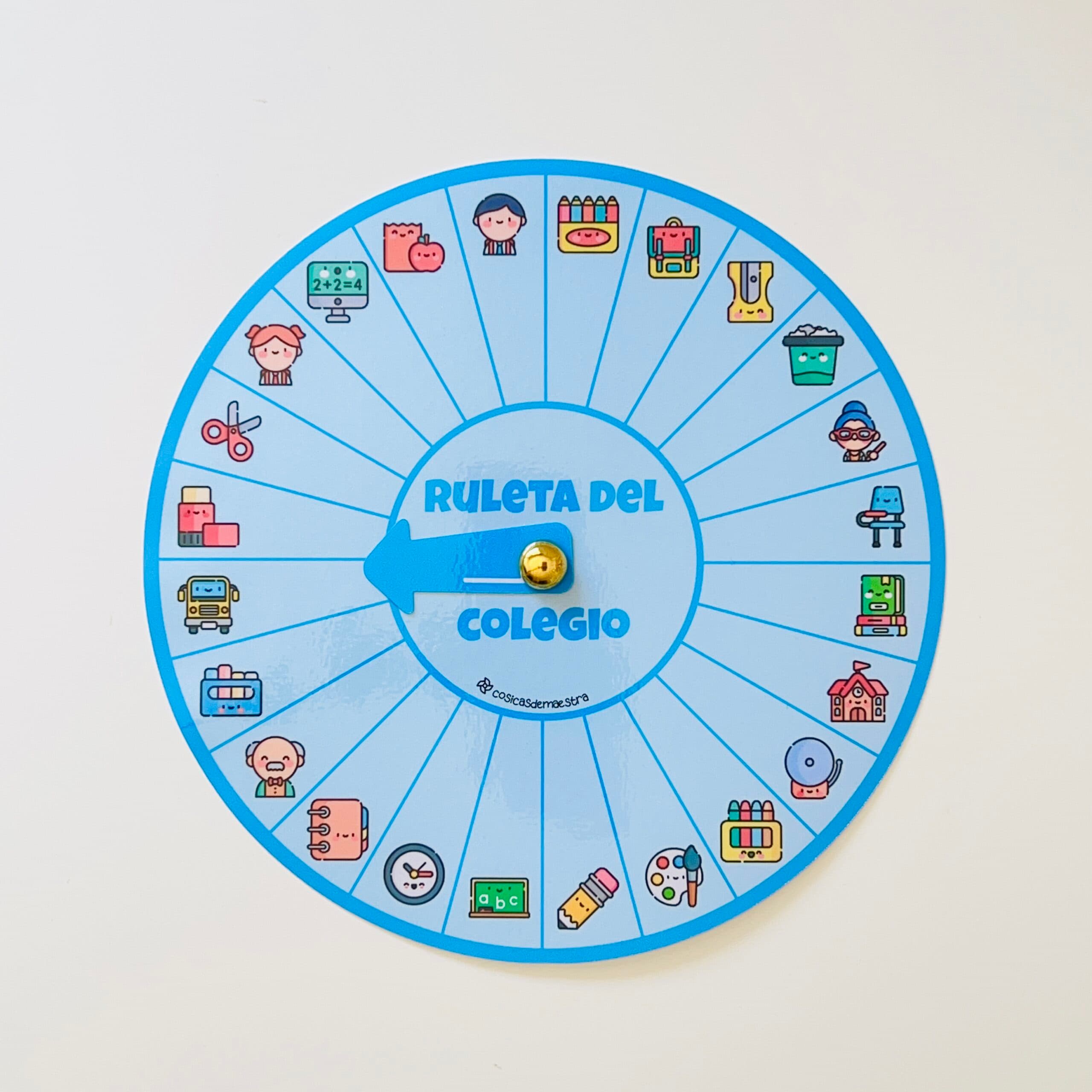 Mini ruleta para ofrecer diferentes oportunidades de aprendizaje a nuestros hijos y alumnado relacionado con la temática del colegio.