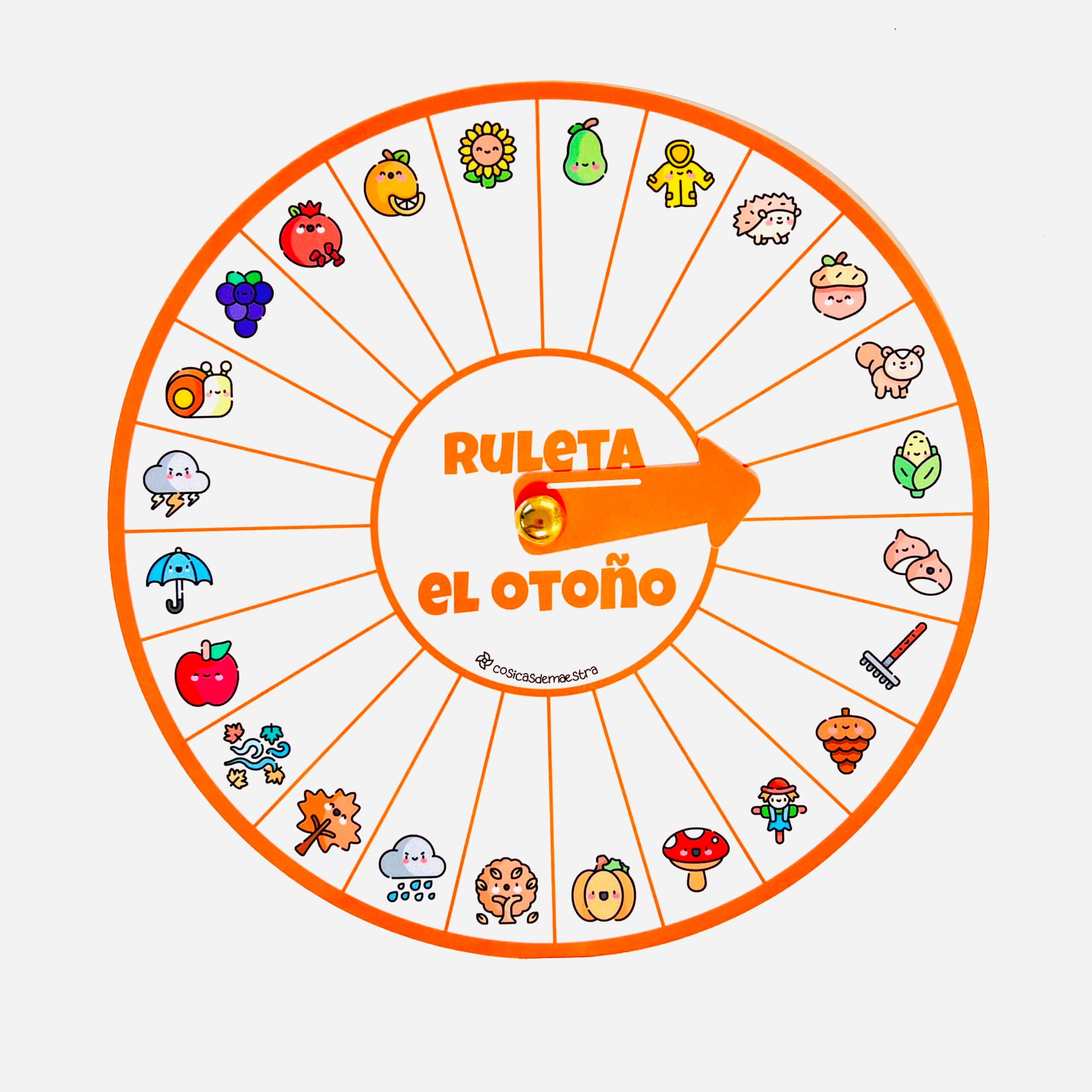 Mini ruleta para ofrecer diferentes oportunidades de aprendizaje a nuestros hijos y alumnado relacionado con la temática del otoño.