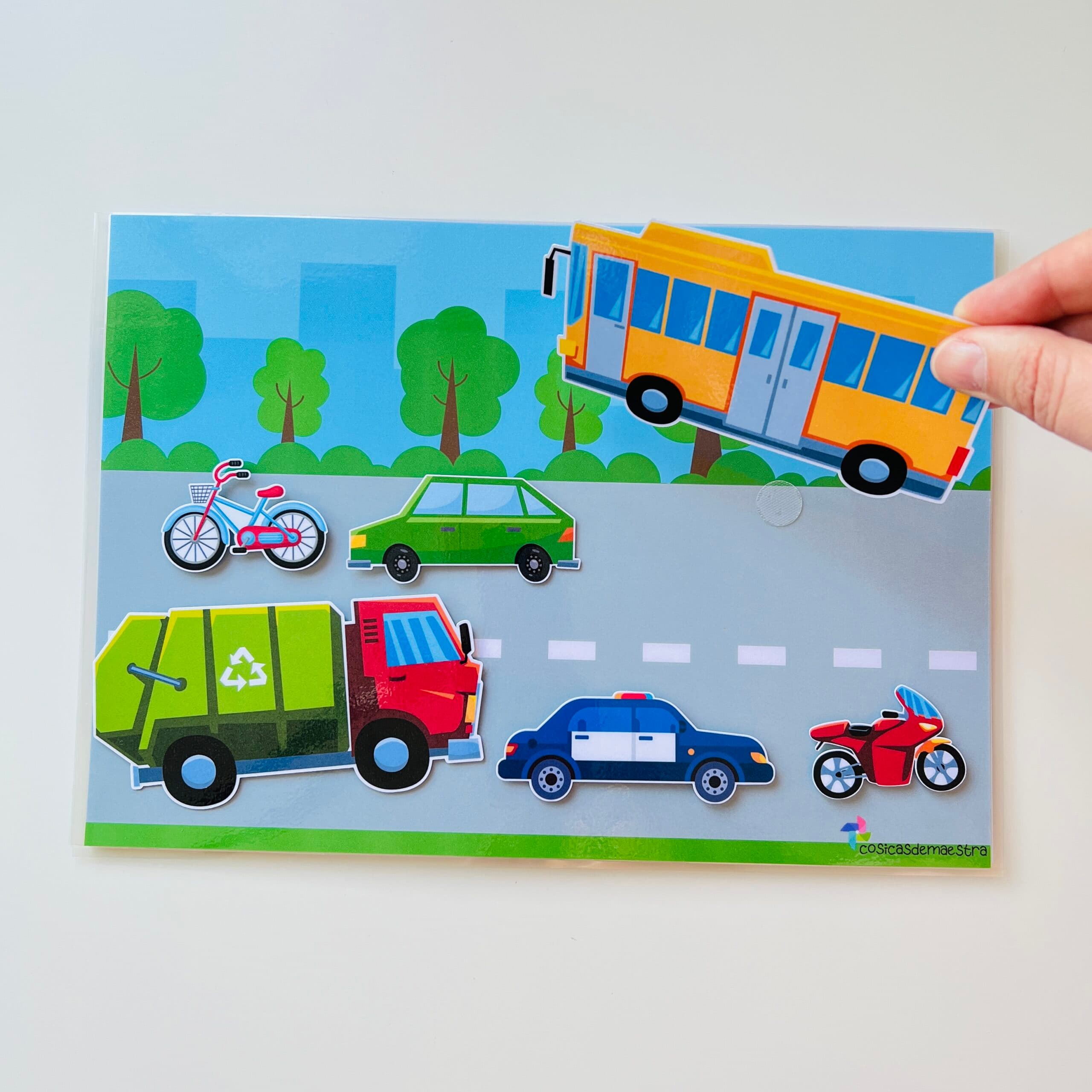 - 3 láminas con los dibujos de medios de transporte y portada.