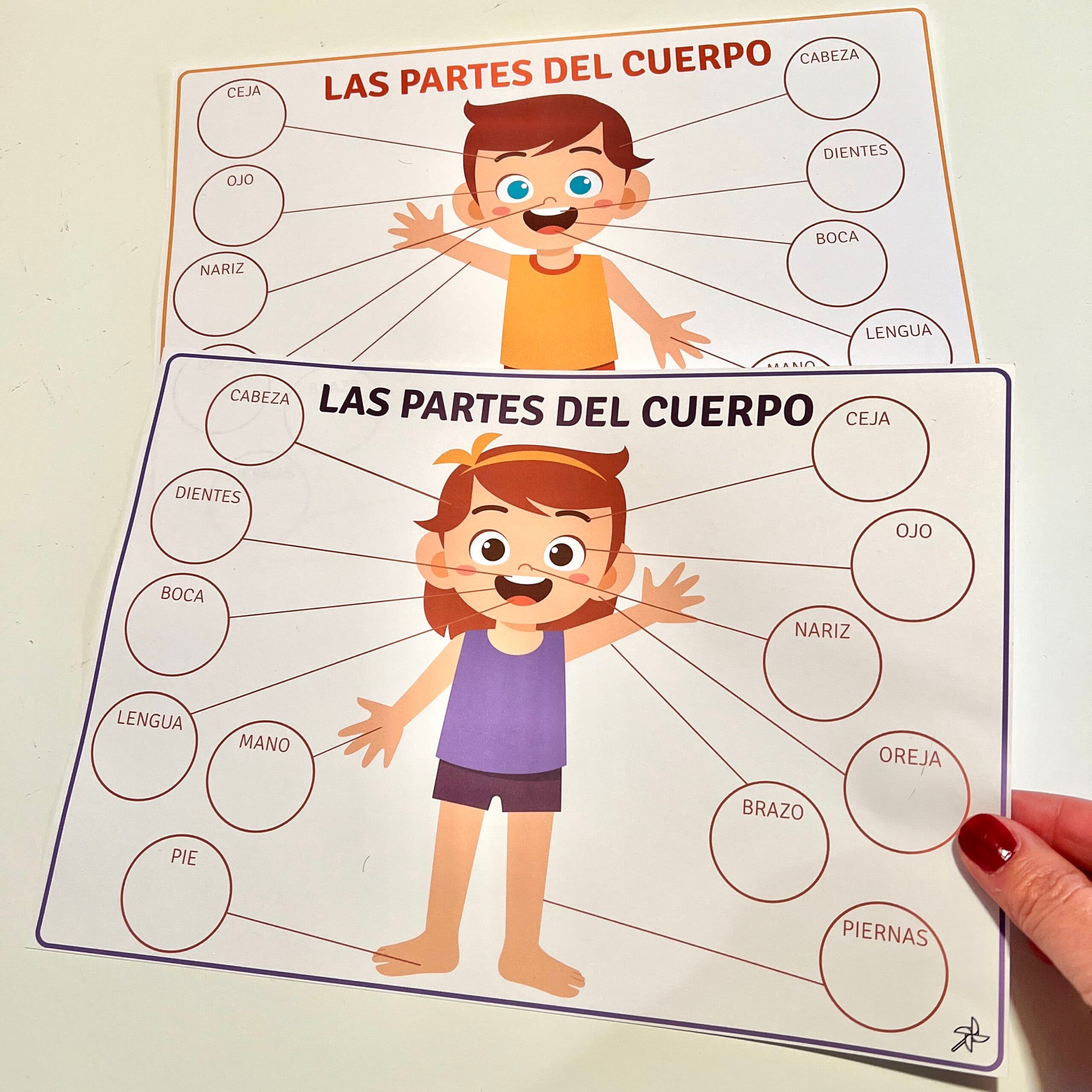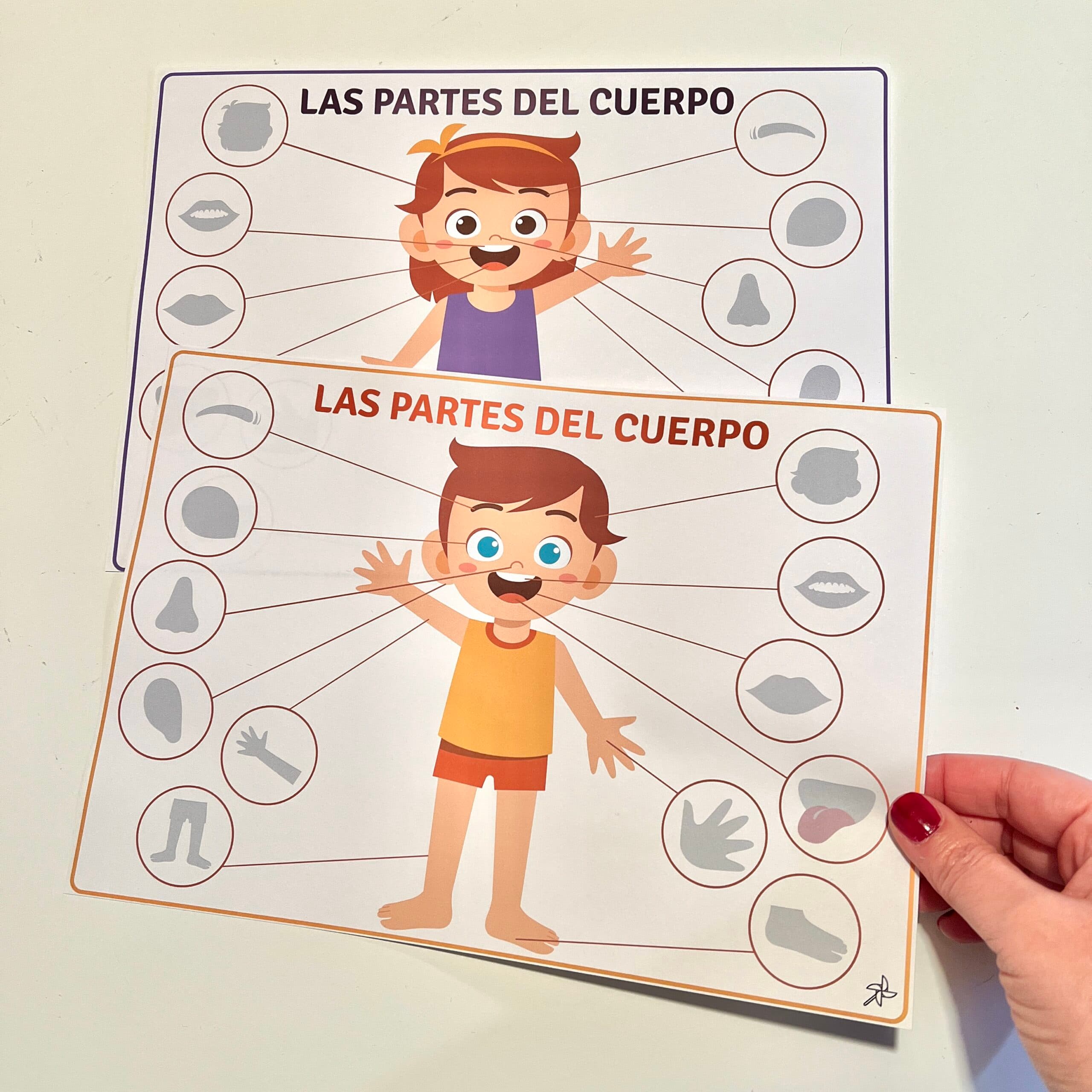 - 4 láminas para colocar las partes del cuerpo con dos niveles de dificultad.
