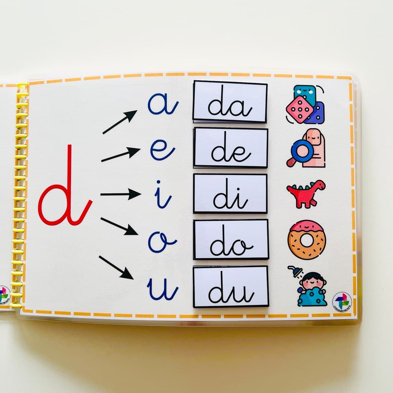 Este silabario en español es un recurso didáctico pensado para apoyar a los niños en sus primeros pasos hacia la lectoescritura. A través de actividades lúdicas y manipulativas, los pequeños pueden aprender y practicar las sílabas simples, fomentando un aprendizaje activo y divertido que refuerza sus habilidades lingüísticas básicas.