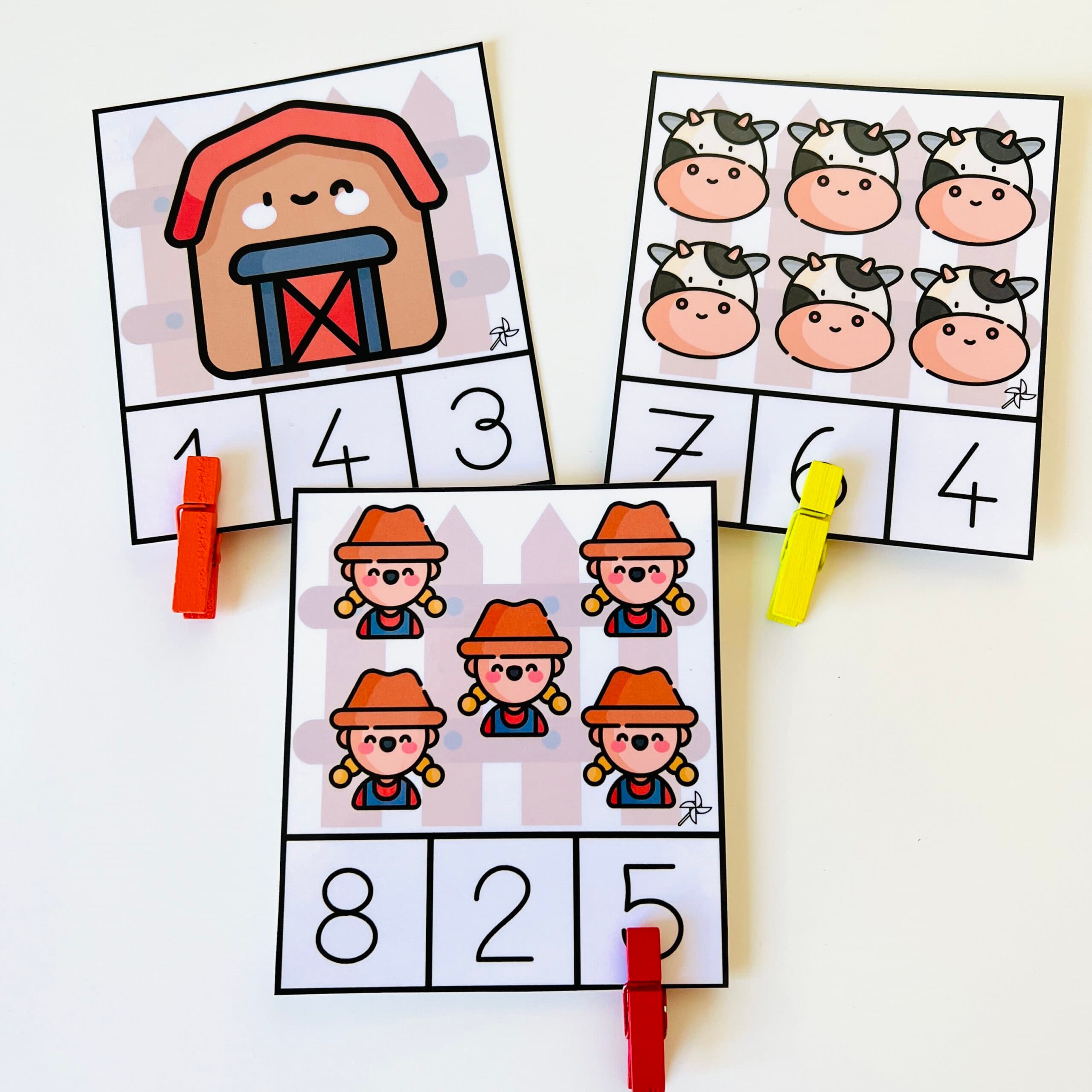 Juego educativo para trabajar el conteo, la numeración, la cantidad y el vocabulario relacionado con la temática de la granja.